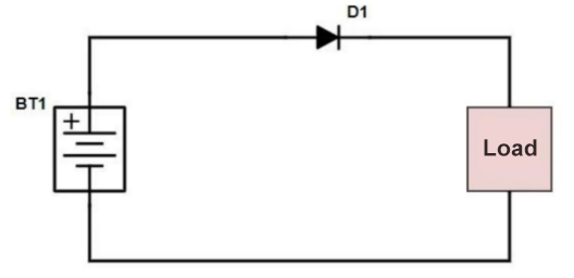 In the main circuit, a diode is connected in series to realize the simplest and most reliable low-cost anti-reverse connection function circuit by utilizing the unidirectional conduction characteristics of the diode. This low-cost solution is generally used in small current applications, such as small toys.