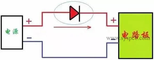 When the power supply is reversed, the diode is cut off, the power supply cannot form a loop, and the circuit board does not work, which can effectively prevent the problem of reversed power supply. But there will be a diode voltage drop, and it is also important to choose the corresponding diode according to the supply current.