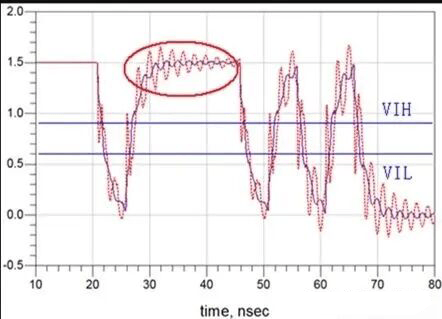 Signal reflections occur when impedance discontinuities along a transmission path cause portions of a signal to bounce back toward its source. These reflections interfere with the original signal, creating ringing (oscillations at signal transitions) and potentially causing false triggering of digital circuits . Key sources of impedance discontinuities include: