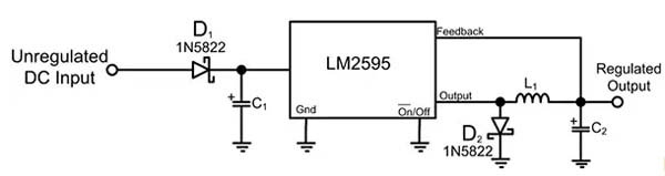 Schottky diodes can be used to protect the regulator circuit from accidental application of reverse polarity at the input. The diode D1 in this example is used for this purpose. The main advantage of this diode in this application is the low forward voltage drop. Another more important function of the Schottky diode (D2 in this example) is to provide a return path when the switch is closed, allowing current to flow through the inductor L1. D2 must be a fast diode connected with a short low-inductance to achieve this function. In this application of low-voltage power supply, Schottky diode has excellent performance.